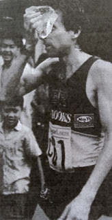 As for Rodgers, he was leading after 22 miles, but wilted under the tortuous humidity. "As I was looking for water after cramps stopped me, a Vietnamese woman on a scooter came alongside me and asked if I was OK. I asked for water and she went into a house and brought me a big glass of water and a huge chunk of ice," Rodgers remembered. "I guzzled the water and walked/jogged to the finish." The massive number of spectators reminded him of the Boston and New York marathons.